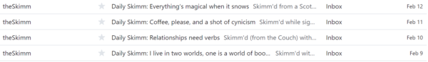 Consistent brand subject lines pay off for each of these newsletters. I’m partial to the Morning Brew’s consistent emoji for several reasons. It echoes the brand name, and it takes up little space, which allows more of the news in the subject line. I’m not a big fan of using “Skimm” twice in its emails – the sender and the subject line seem like overkill when space is at a premium.