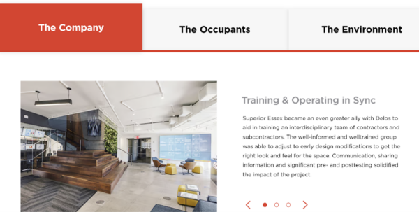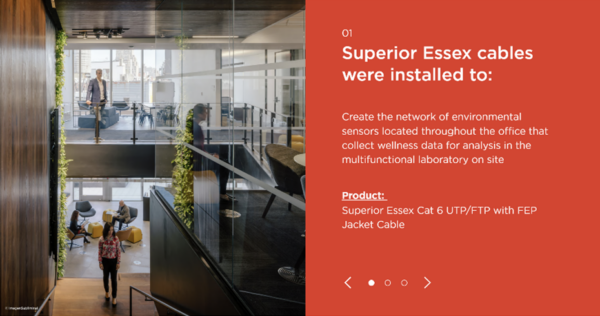 Superior Essex, a manufacturer of cables, opted for an interactive case study experience to tell the story of its work for the corporate space of Delos, a wellness real estate firm. (I encourage you to click through the full interactive case study, as describing it can’t adequately capture the experience.)