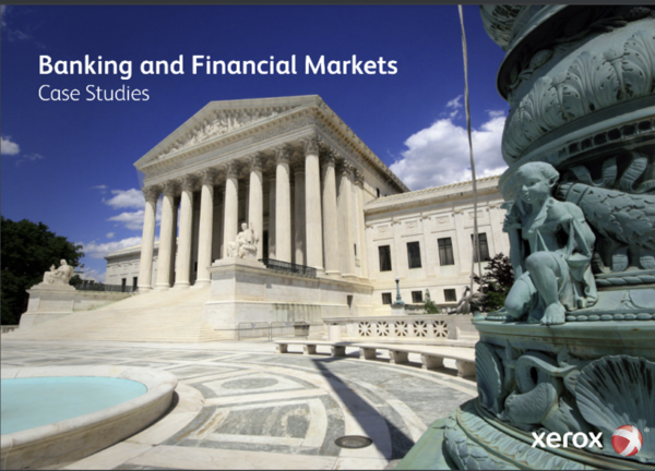 Xerox makes itself a secondary character in both of these case studies. In this PDF compilation of case studies for banking and financial markets, the cover includes the Xerox logo lower right. It also does a nice job of using a high-impact, non-product-related image. Unfortunately, it opted for a boring label-type headline.